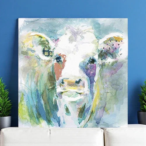 Enhance your living space with this stunning Watercolor Cow Canvas Wall Art. Crafted on high-quality, pH-neutral, and acid-free canvas, this piece promises durability without fading or yellowing. Featuring a vibrant watercolor depiction of a cow in a meadow, rendered through the precise French giclée technique, it delivers vivid colors that create a striking focal point in any room. This bold artwork is perfect for adding a touch of charm and personality to your interior décor.
