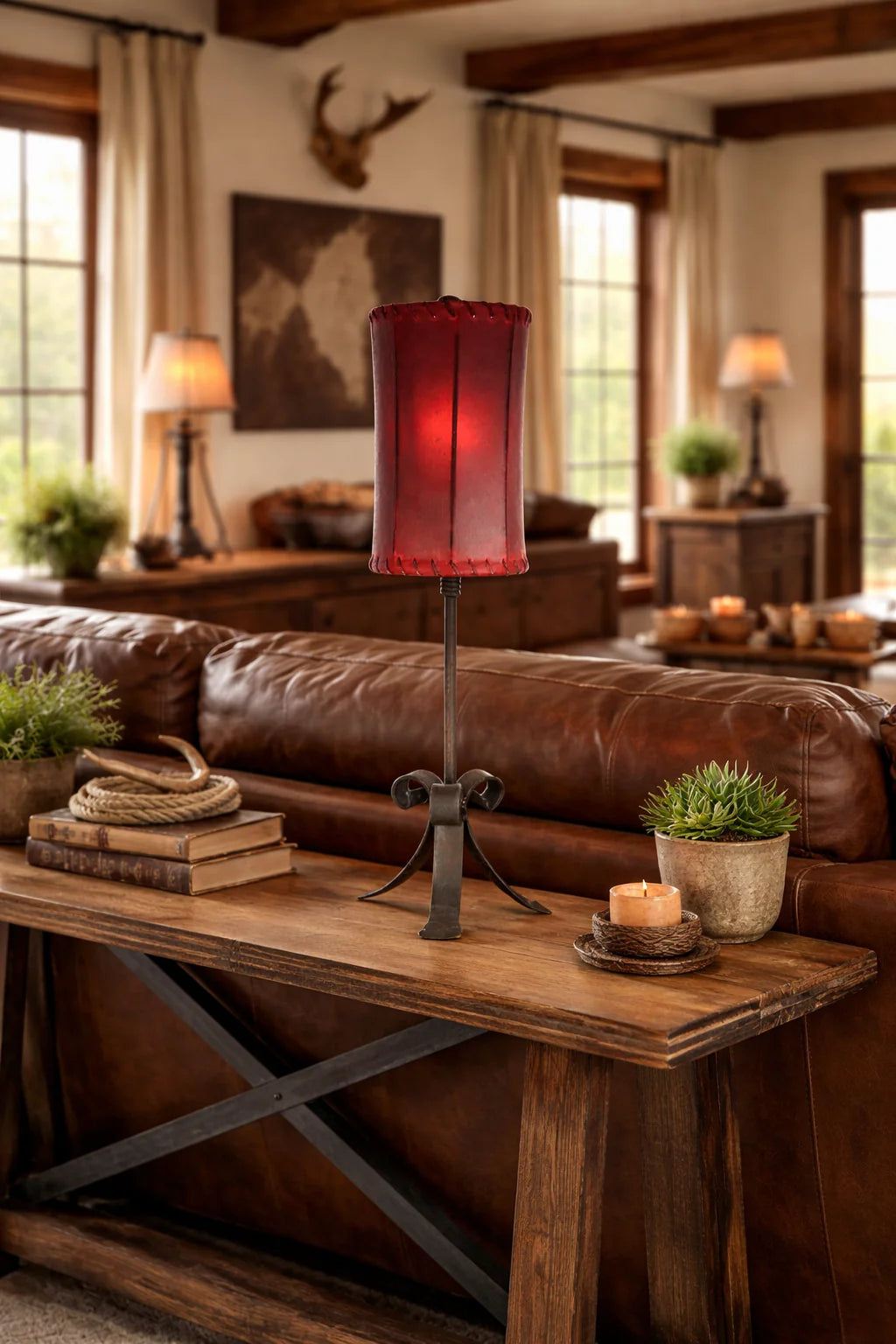 Light up your space with this genuine 8" Cylinder Raw Hide Lamp Shade! Crafted from genuine cowhide and available in 8 vibrant colors, its unique natural markings and hand stitched details will give your room character and charm. Add a touch of luxury to your western inspired space.