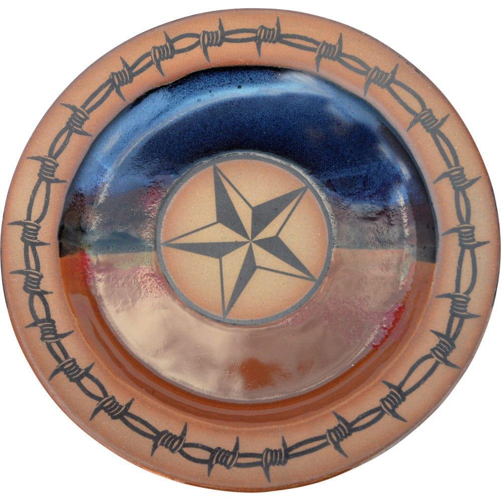 Our Barbed Wire & Star Western Dinnerware set is handmade pottery dinnerware & very western!  This lead free dish set is perfect for ranch and lodge.