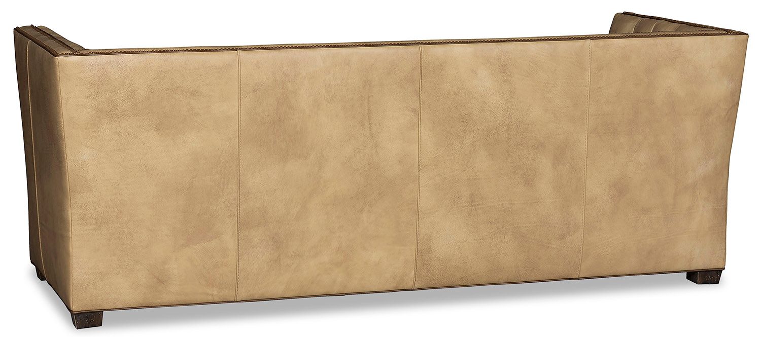 Handcrafted in the United States, this luxury leather sofa is built using an eight-way hand-tied suspension system—an uncompromising hallmark of superior upholstery. From its sculptural silhouette to its generously plush seating, the sofa is designed to anchor your living space with warmth, character, and enduring beauty.