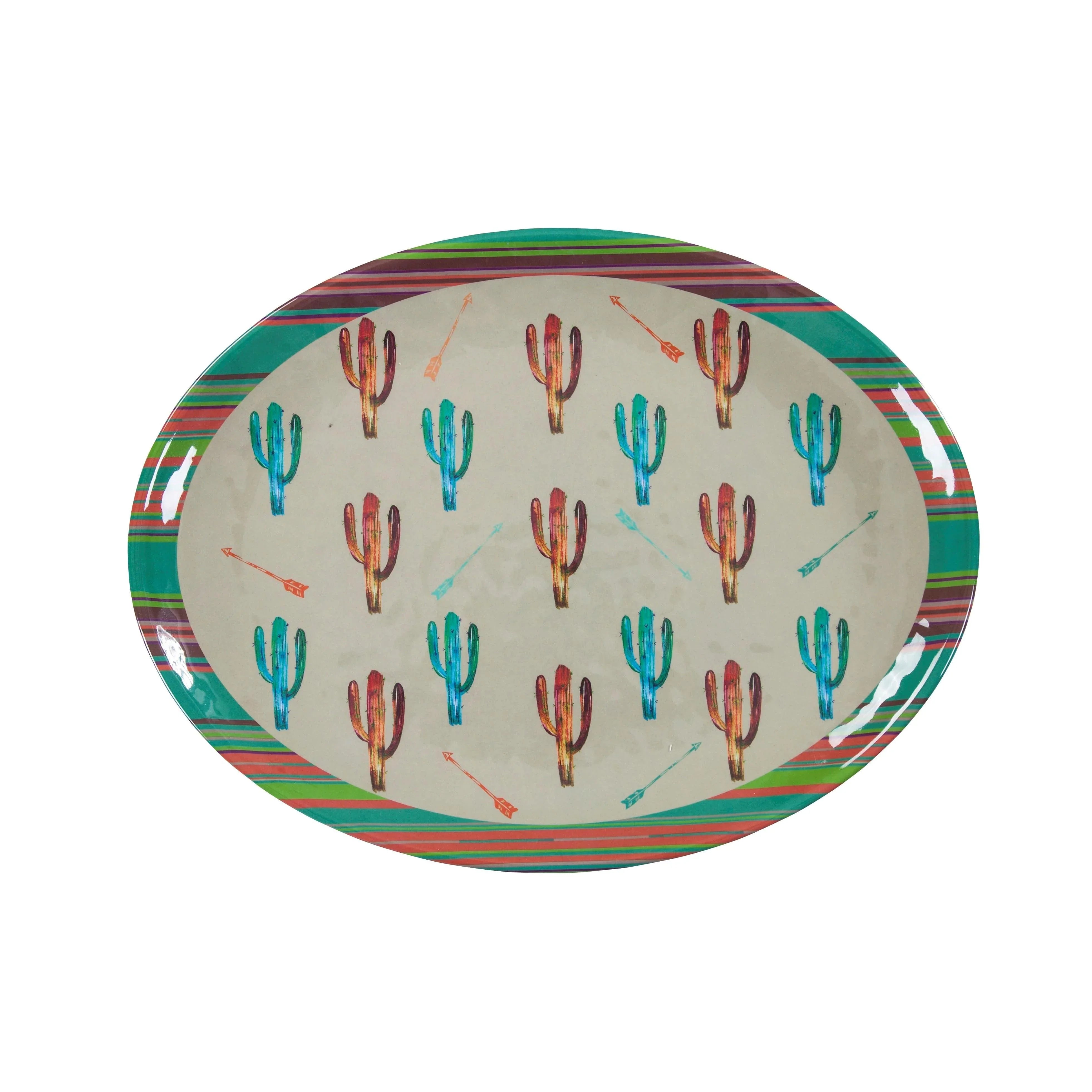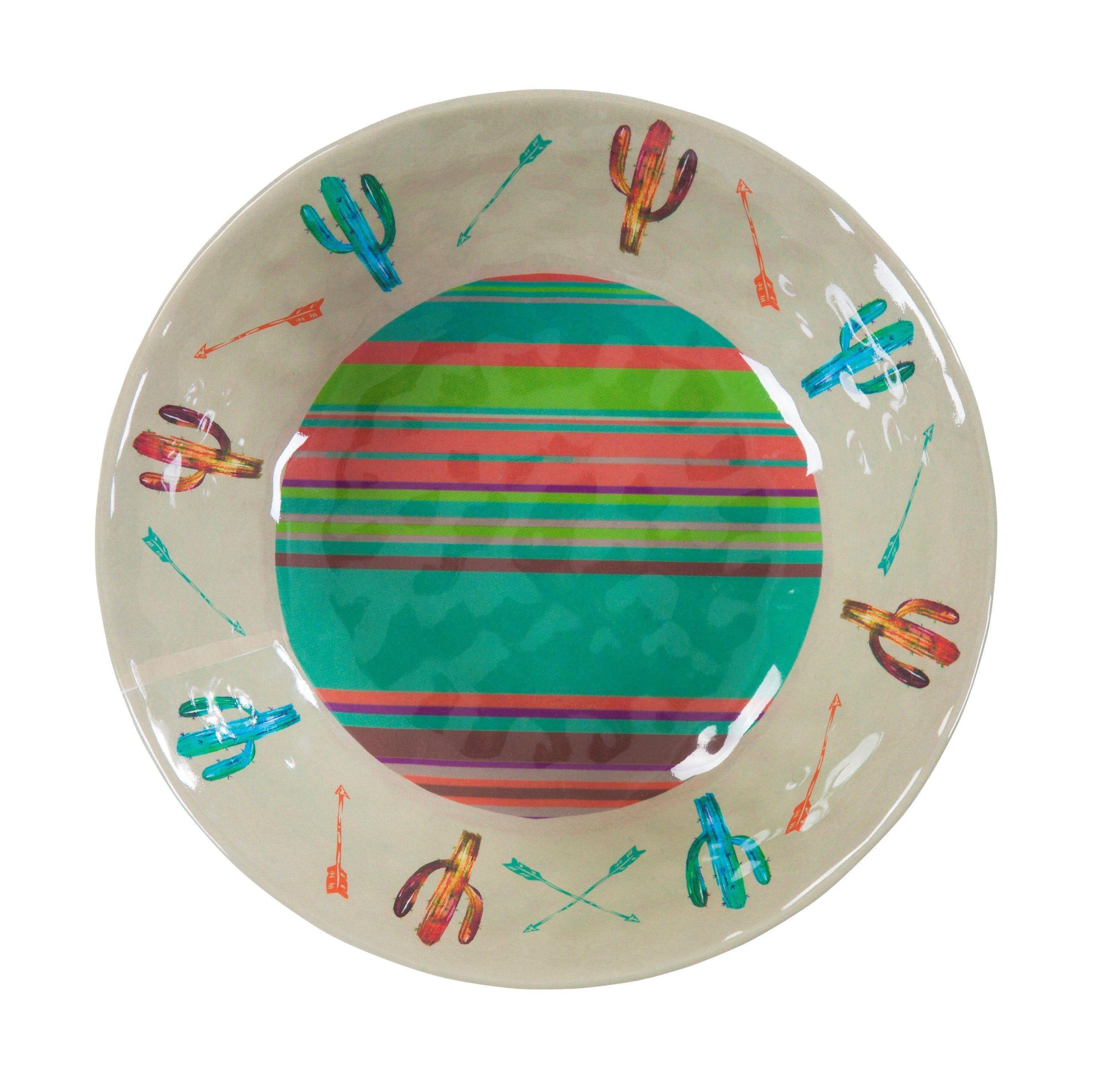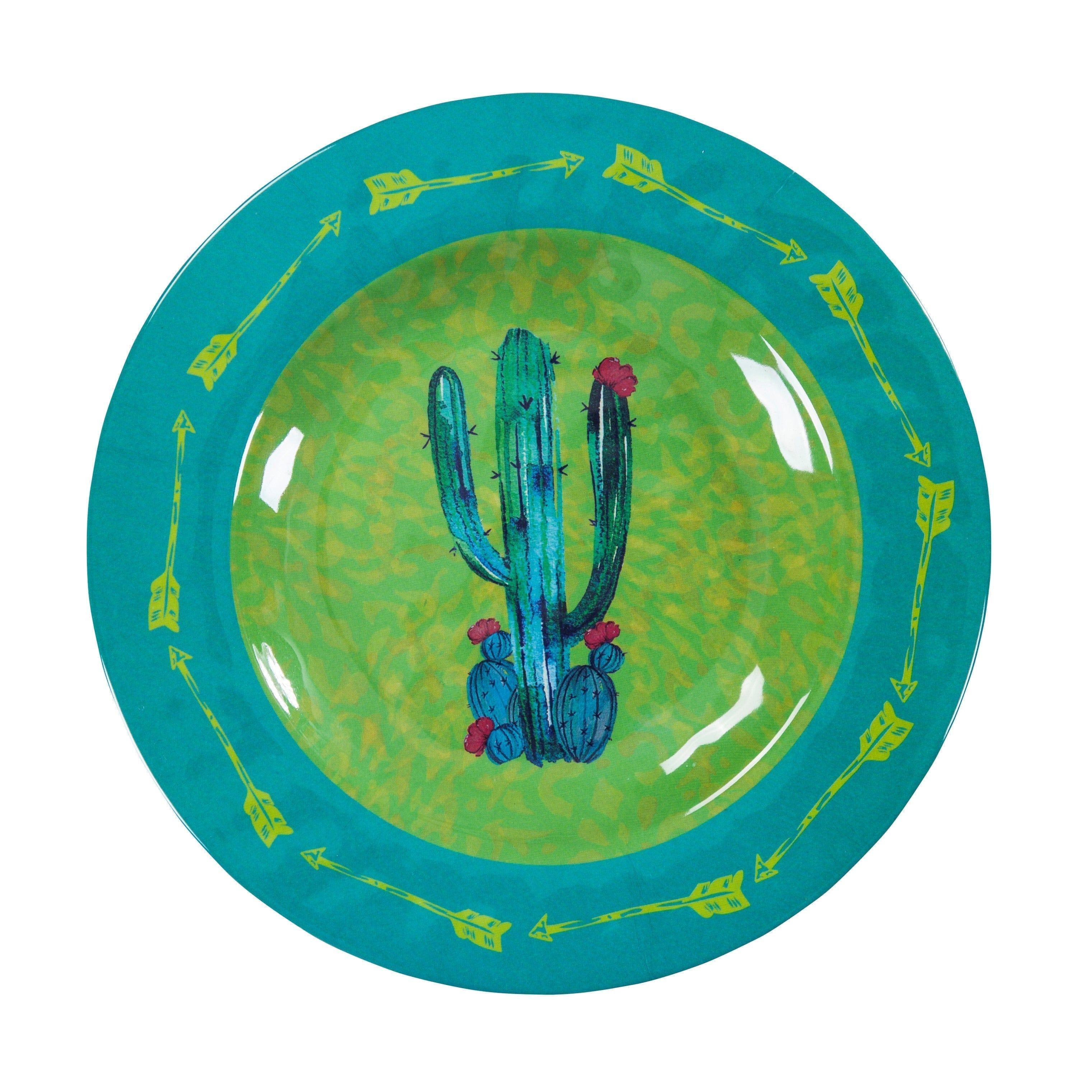 This Cactus Design Melamine 14 Piece Set will add a flair of the Southwest to your table top. Vibrant colors will quickly make this set a fun favorite. Built to last melamine is perfect for outdoor barbecues, family gatherings and durable enough for daily use. Cactus Melamine collection includes dinner and salad plates, bowls, a serving platter and serving bowl. Imported. Items featured in our collections can be purchased separately.