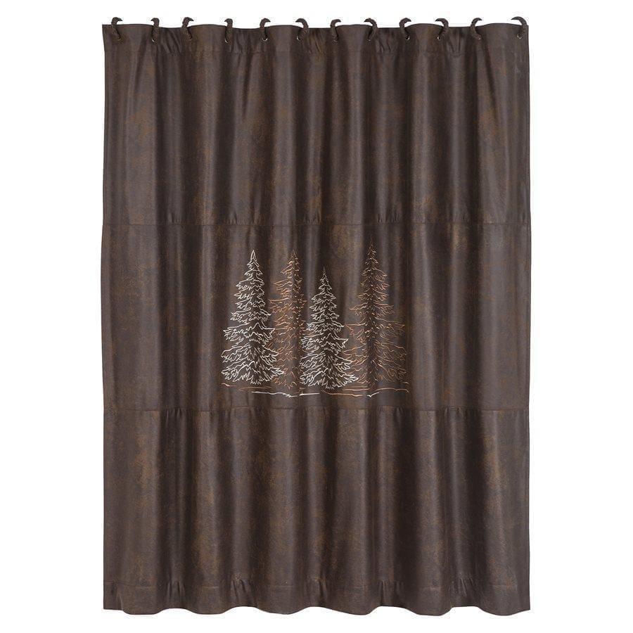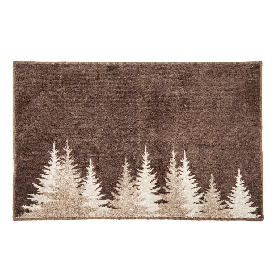 Recalling the majestic scene of a winter-touched forest, the Clearwater Pines Bathroom Set evokes a rustic charm to your washroom. Inspiring a cozy cabin feel, its warm palette of chocolate brown, cream, and mocha is accented by light paint flecks to give each piece a homespun pottery feel. This set includes an embroidered shower curtain w/ fabric covered rings, 3-piece bath towel set, bath rug, and 3-piece bath countertop accessory set.