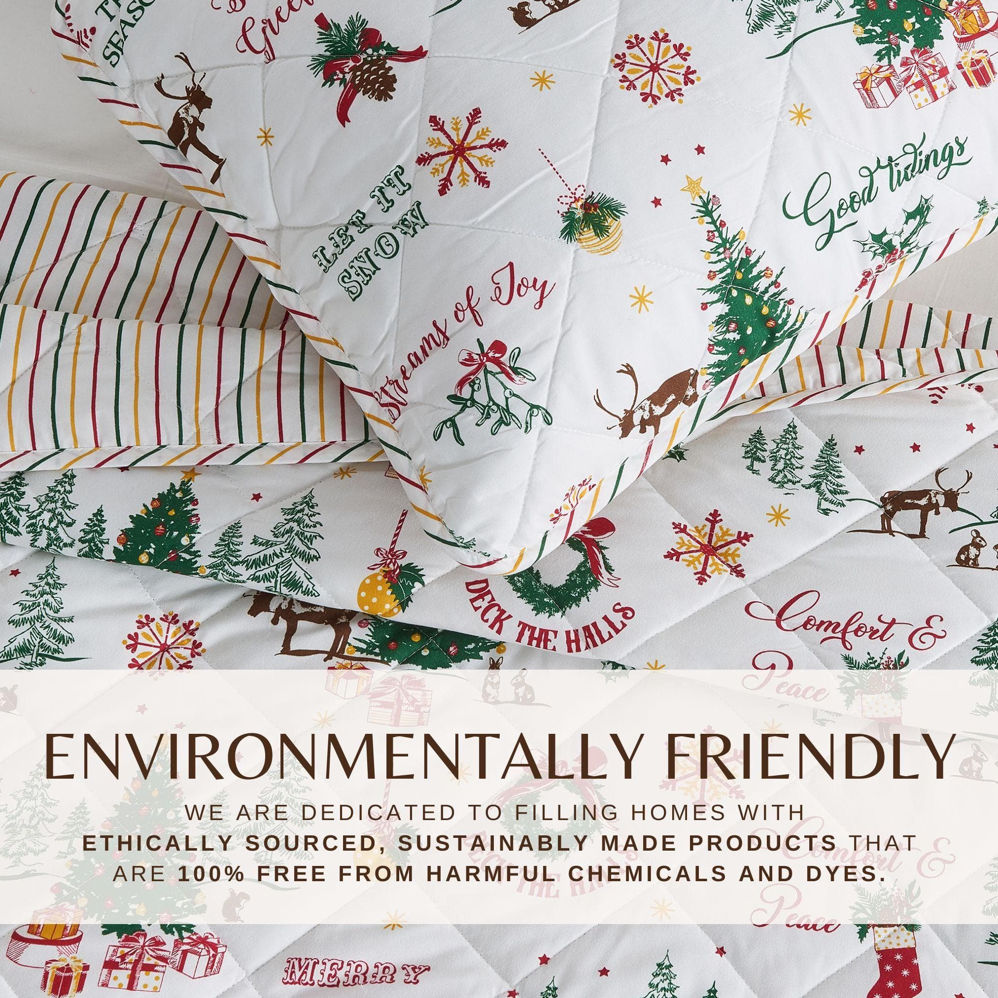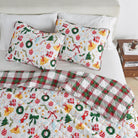 Transform your bedroom into a holiday haven with this stunning seven-print quilt collection. Each design bursts with festive charm, bringing warmth and seasonal magic to your space. The lightweight construction makes it ideal for layering, offering just the right amount of coziness without bulk. Built to withstand the season's excitement, these quilts are machine washable and designed to maintain their vibrant colors year after year. Whether you're updating your master bedroom or guest room, this versatile collection lets you switch up your holiday aesthetic with ease. Wrap yourself in comfort and celebrate the season in style.