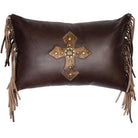 Cowhide Cross Leather Fringed Western Accent Pillow: