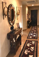 Enhance the look and feel of your home with Cowhide Print & Western Star Area Rugs, showcasing a wood grain pattern, Texas stars, and cowhide print. Made with a durable, stain-resistant premium rug pile, this western rug comes in multiple sizes to fit any space in your home. Whether it's hallways, living spaces, bathroom, dining room, or anywhere else, these luxurious floor coverings add a rustic and western charm. Designed to withstand heavy foot traffic and daily wear, our commercial grade rugs are perfect for busy families. Don't settle for less, upgrade your home with these premium rugs today!