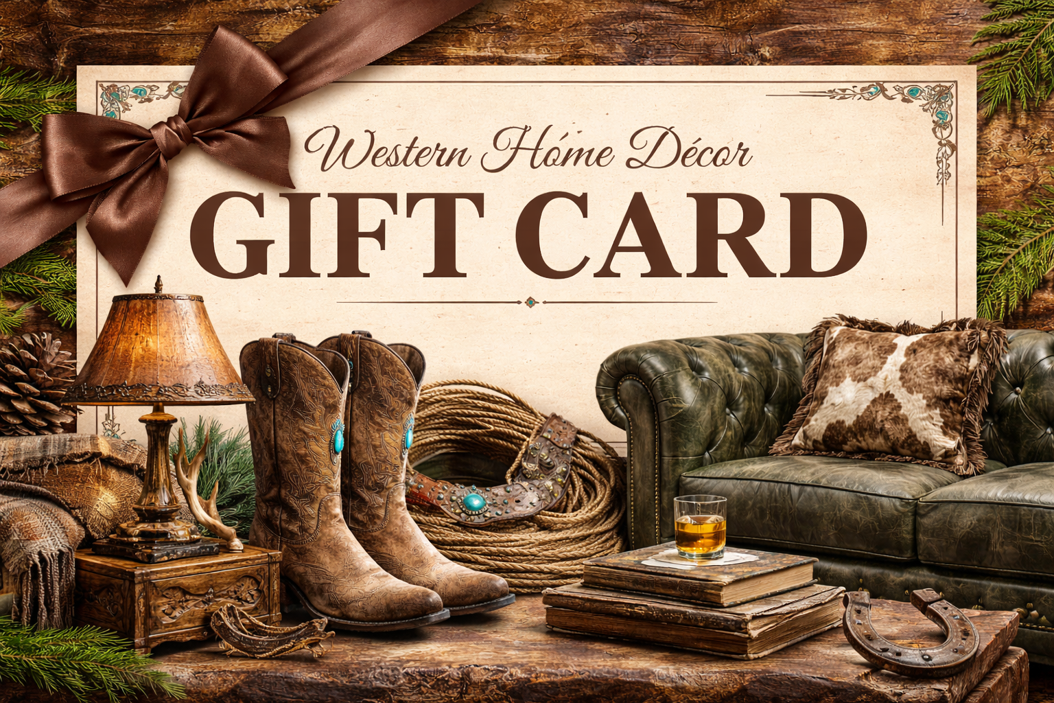 Give the gift of timeless Western style and American craftsmanship with a Your Western Decorating Gift Card. Perfect for those who appreciate authentic materials, artisan-made furniture, and décor inspired by the rugged elegance of the American West.