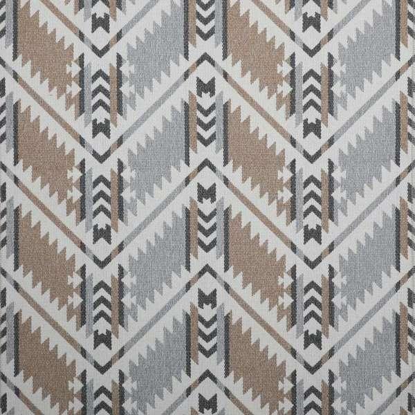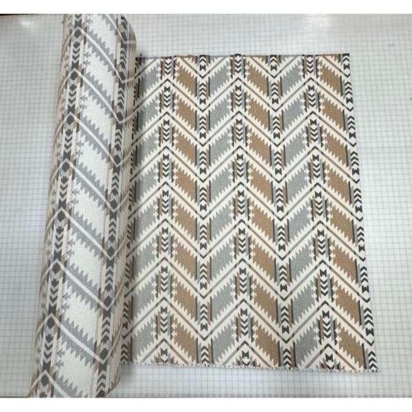 Experience the beauty of our High Plains Wheat Upholstery Fabric, featuring a stunning zig-zag pattern in elegant shades of light grey, taupe/tan, and white. Elevate your furniture with this premium, grade 40 upholstery material that can be used in a variety of applications.