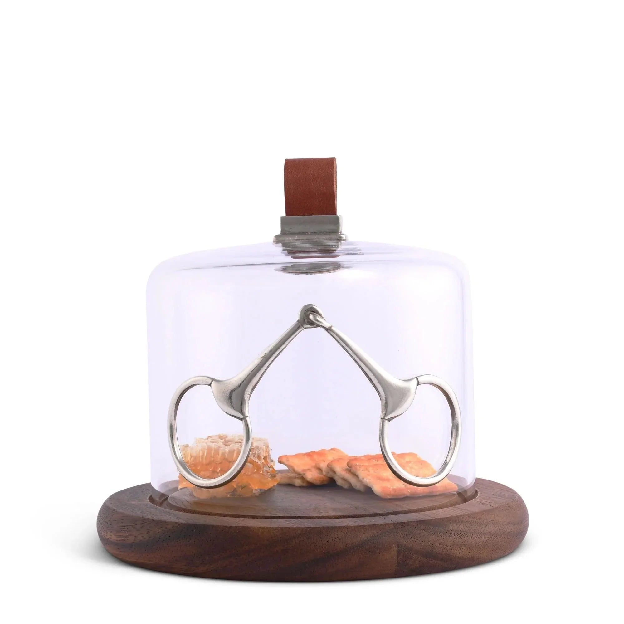 Elevate your hosting game with this exquisite Horse Bit Glass Covered Cheese Board, skillfully crafted with genuine leather, solid wood, and durable, hand-blown glass. Perfect for adding a touch of elegance to any occasion, from lively parties to intimate gatherings. Whether it's a housewarming, wedding, or baby shower, this unique board is sure to impress and inspire. Transform your dining experience with this exquisite glass cheese board.