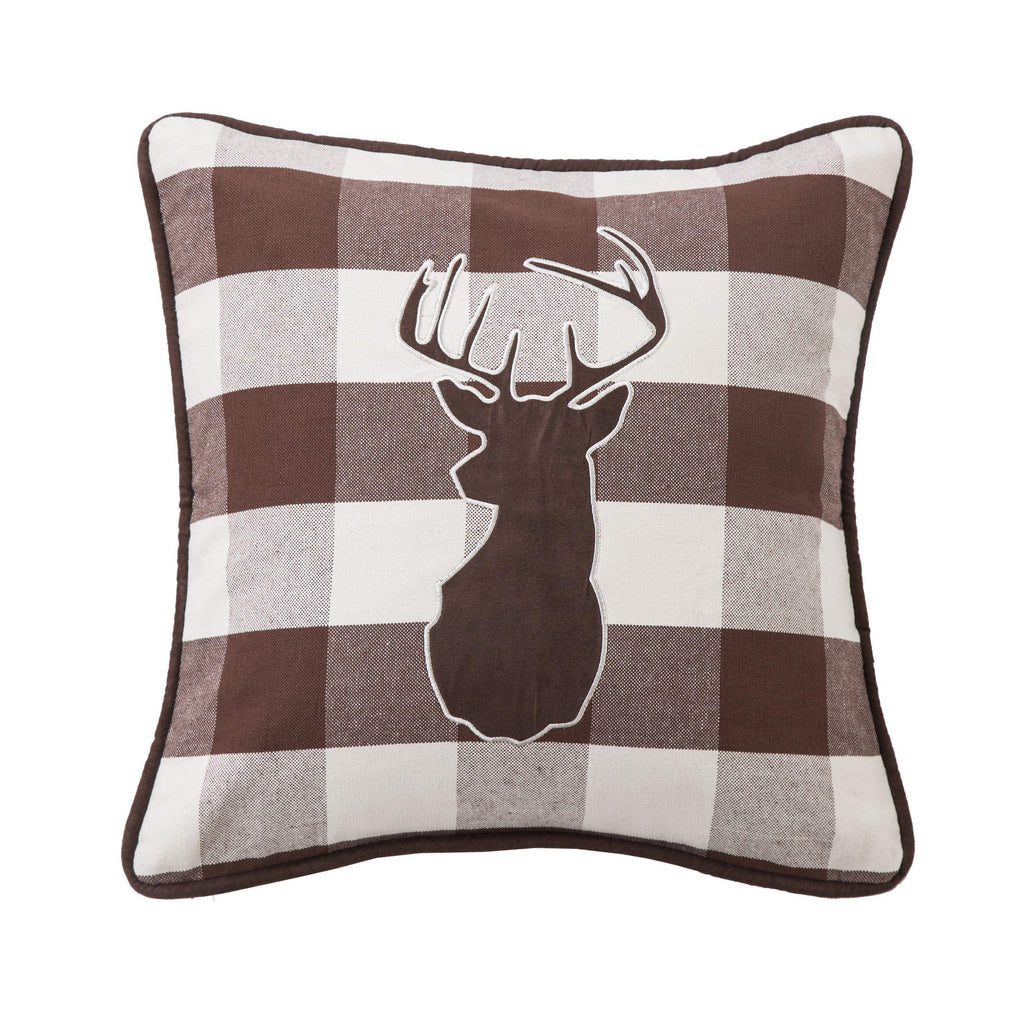 Featuring an oversized buffalo check pattern, the Huntsman Buffalo Linen Pillow adds a warm, rustic charm to any lodge-style bedroom. Drawing inspiration from nature, this pillow features a deer silhoutte in faux suede, emphasized with white embroidered lines. This pillow is tailored with chocolate faux suede piping for a clean and elegant finish. Coordinate with other pillows and shams in our Huntsman Collection to complete a rustic lodge-inspired bedroom.
