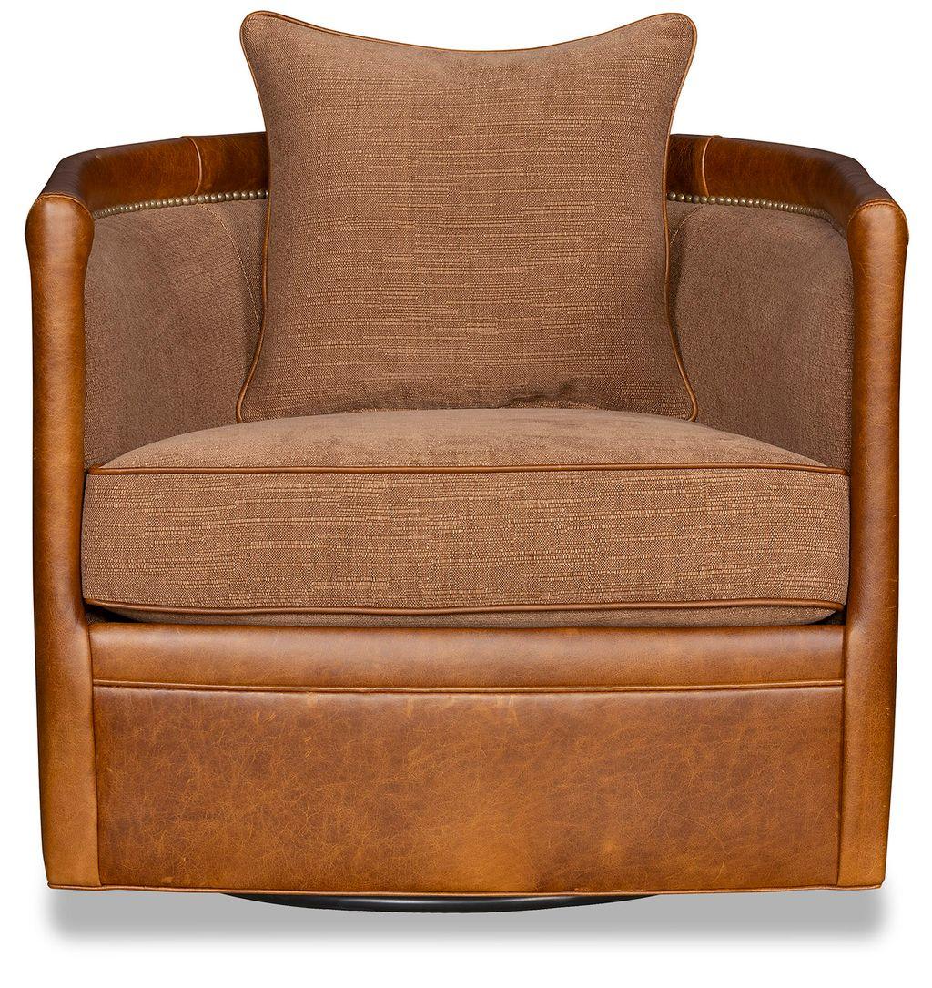 Crafted in America with expert 8-way hand-tied construction and premium full grain leather, this chair is designed for durability and lasting comfort. Don’t miss out—bring home the Keever Southwestern Swivel Chair today and experience its enduring elegance and cozy appeal in your living space.