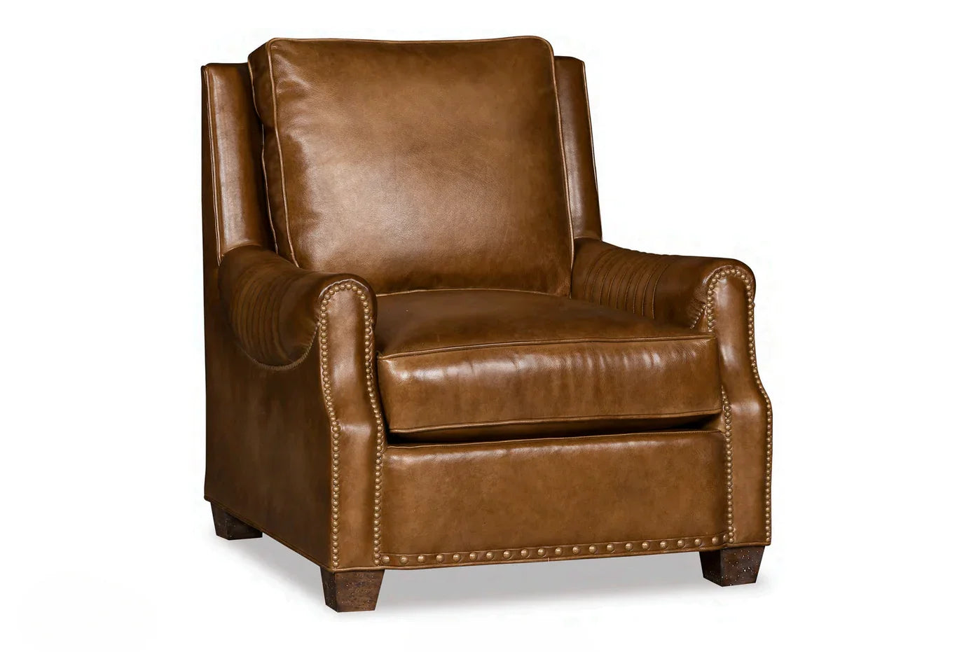 Displayed here in Sable Leather, the Lakota Luxury Leather Lounge Chair can be tailored to suit your unique space. Shown in optional channeled sides. Channel seams are not standard in price. Reach out to explore customization options. This design is also offered as the Lakota Leather Sofa.