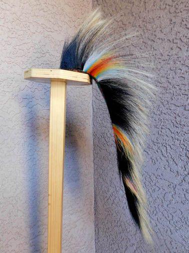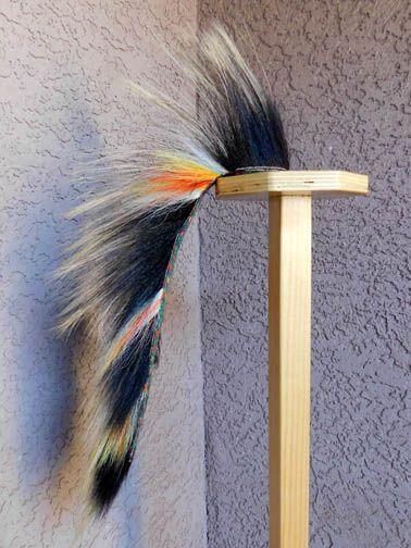 Our Native American crafted porcupine roach is created using porcupine guard hair, meticulously hand-tied and adorned with dyed white tail deer hair.