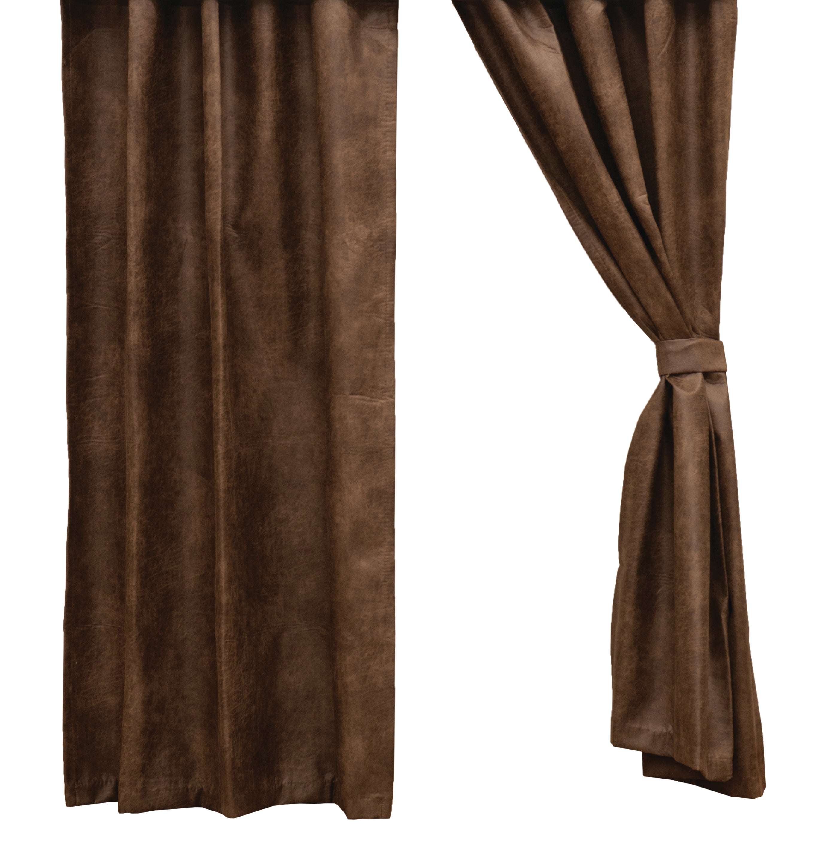 Transform your space into a rustic oasis with our Paloma Earth Draperies. Crafted from durable and easy-to-care-for faux leather Silt (100% Polyester), these pieces bring the rugged beauty of aged leather to your windows. The distressed brown coloring adds an element of warmth and charm to any room, while the 3-inch rod pocket and 1.5-inch header make it easy to hang on any standard curtain rod.