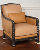 Experience unparalleled comfort and style with the Ingrid leather chair, featuring a beautifully carved frame and plush cushioning. Displayed here with Low Country Basket-weave inside, beige hair-on-hide on the arms and back, and Renaldi Sand leather inside, its upholstery can be personalized to perfectly complement your room’s decor and mood. Choose Ingrid to showcase your unique and sophisticated taste in every detail.