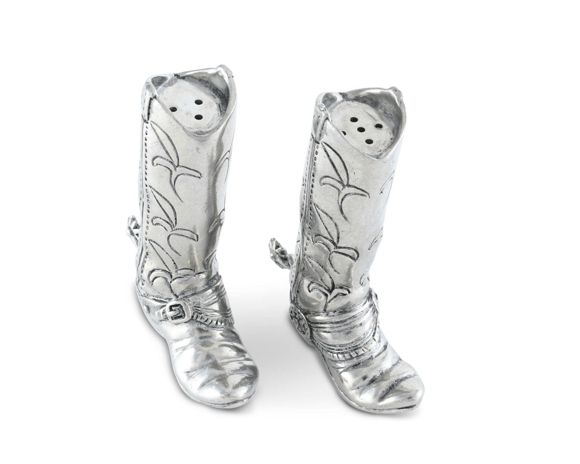 This Cowboy Boot Salt and Pepper Shaker Set is crafted in richly detailed pewter. Coordinates with our Classic Cowboy Kitchen Canisters.