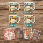 Looking for a set of coffee mugs and coasters to fit your style and personality? These southwestern inspired mugs and coasters work beautifully for any rustic home, capturing a playful tone and western lifestyle. Accessories your breakfast nook with a colorful flair. Whether you are looking for something practical or something fun, you can find it here with these perfect combination of charming look and durable design. This set combines our Aztec Coasters and Pueblo Mugs. Imported.
