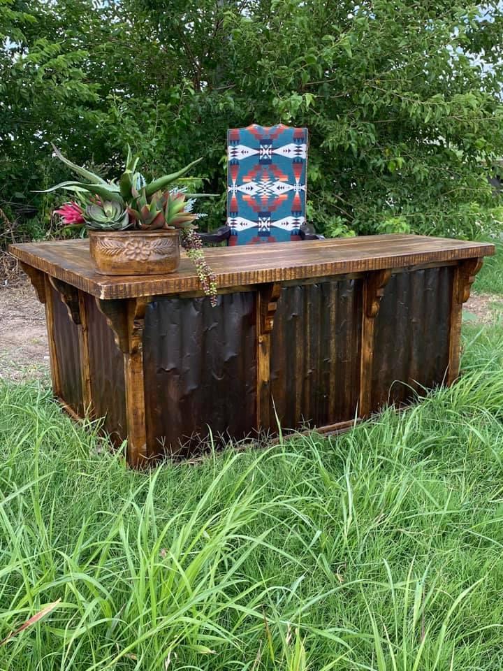 • Constructed of reclaimed Chihuahua Pine and sheet metal.