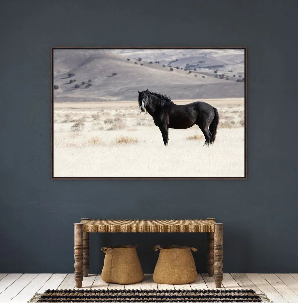 Royal Black - Framed Horse Art is a rustic yet elegant equestrian masterpiece, featuring a classic and refined ranch design. This timeless piece, framed in matte black, adds sophistication and emotional depth to any home or office decor.
