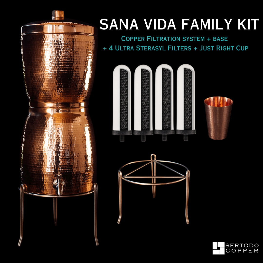 - Family Kit - Copper Filtration Tower, 4 Ultra Sterasyl filters, Stainless Steel Base, 10 ounce Just Right Copper Cup.