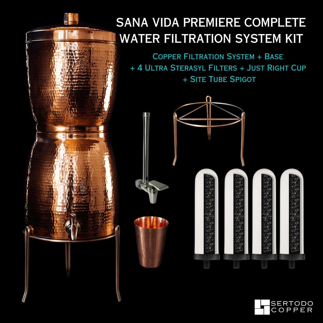 - Complete Premiere - Copper Filtration Tower, Site Tube Spigot, 4 Ultra Sterasyl filters, Stainless Steel Base, 10 ounce Just Right Copper Cup.