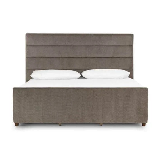 Experience the ultimate in luxury with our Silver Sage High-Style Velvet Bed. The sleek, horizontal channeling adds texture and a linear design, while the stunning headboard exudes elegance and sophistication. Get ready to elevate your bedroom to new heights of style and comfort.