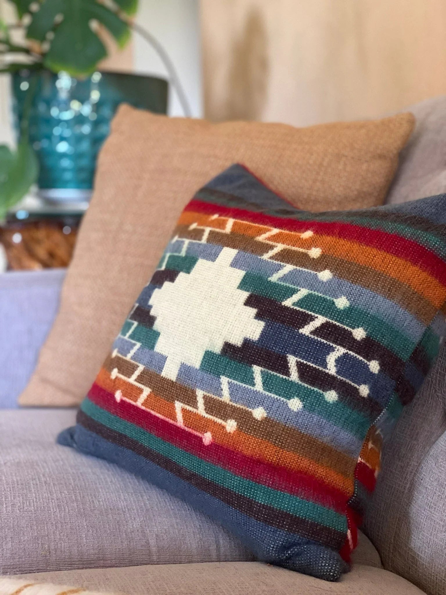 Enhance your home with the artisanal beauty of Ecuadane’s Southwestern Pillows. Featuring bold patterns inspired by our most beloved blanket designs, these ultra-soft pillowcases add a touch of Southwestern charm to any space. Crafted by skilled artisans and made with durable, easy-wash materials, they are available in three versatile sizes. With a convenient reversible design, you can effortlessly refresh your decor to match the seasons or your mood. Whether you’re looking to complement your living room or bedroom, these pillows are designed for both comfort and long-lasting style.