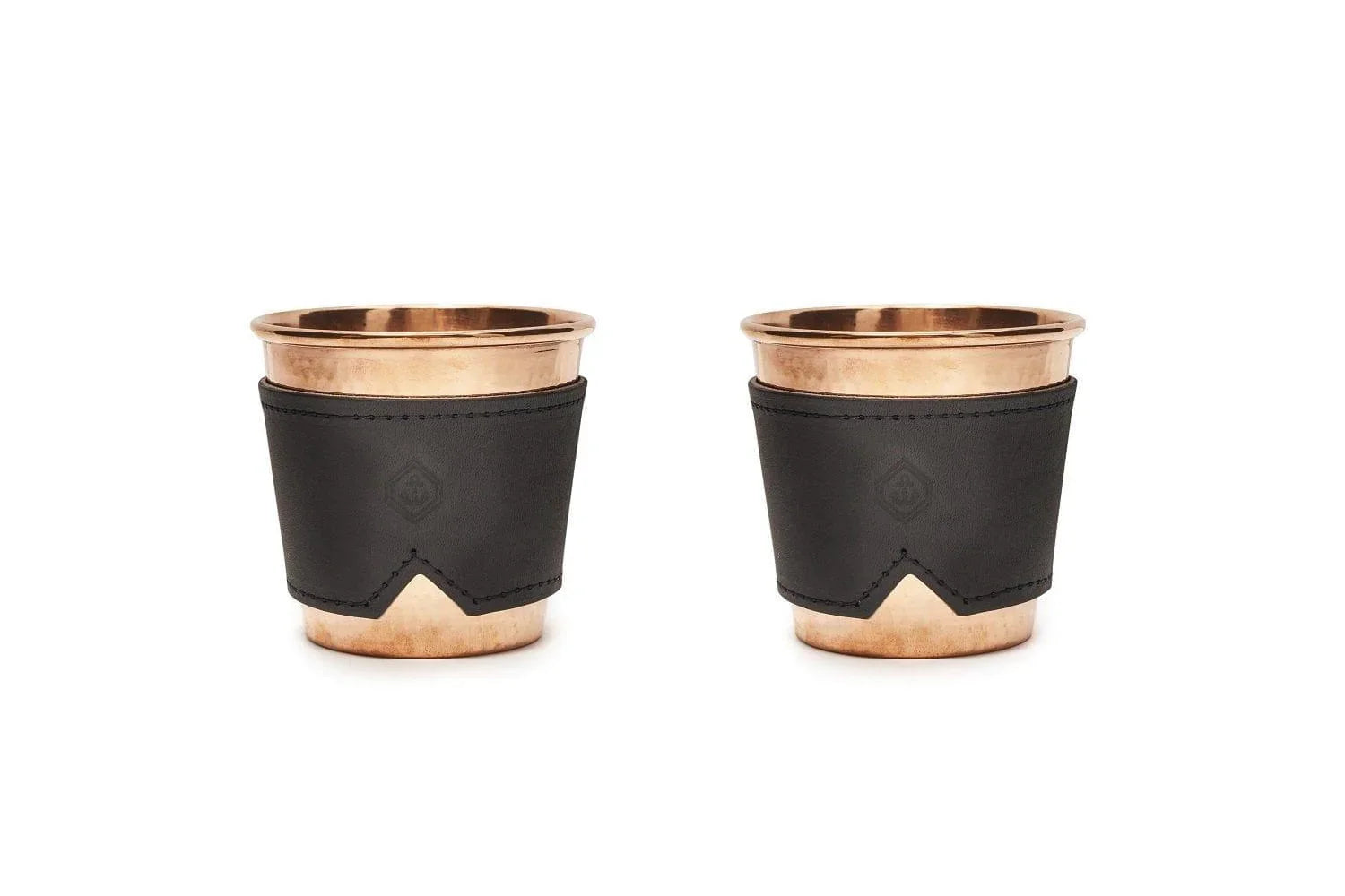 Remove leather sleeves before washing cups. Wash and dry immediately to prevent spotting, though some spotting will occur over time from reactions with tap water. Copper will patina with time, which many find appealing, but can be polished to its original shine. Leather can be spot cleaned with a wet cloth.