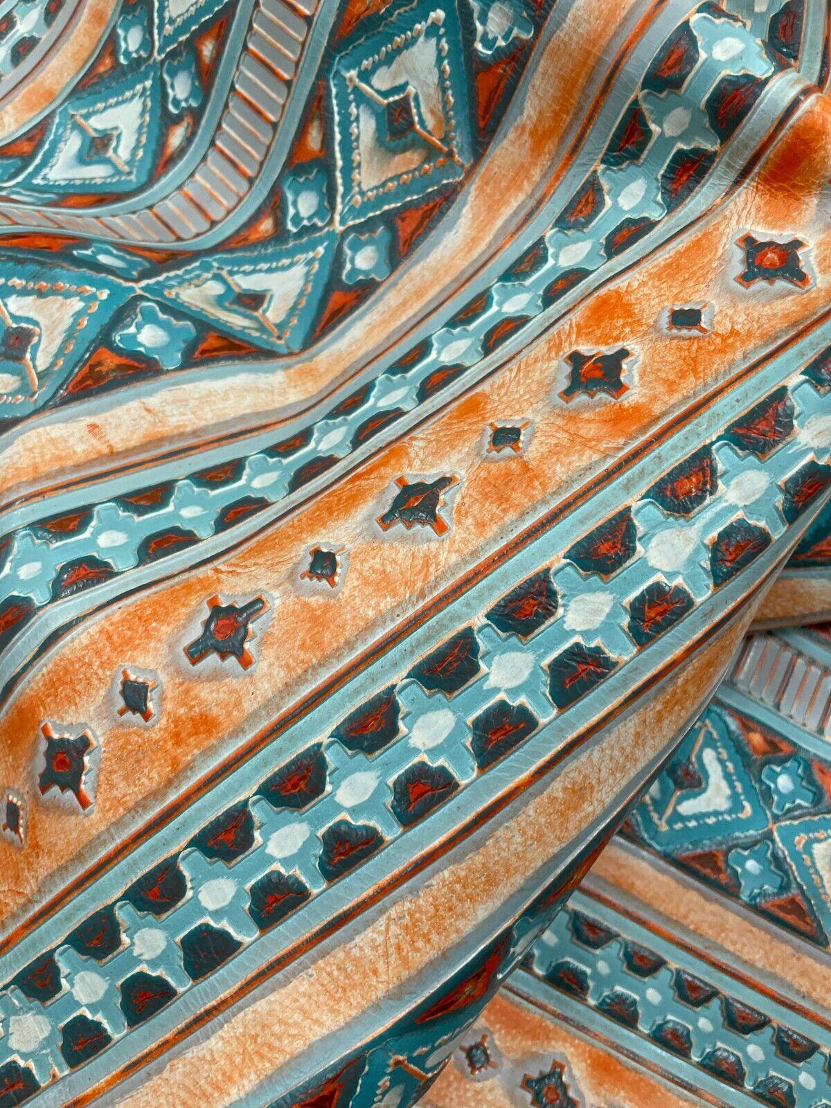 Terracotta Turquoise Hand Painted Leather: