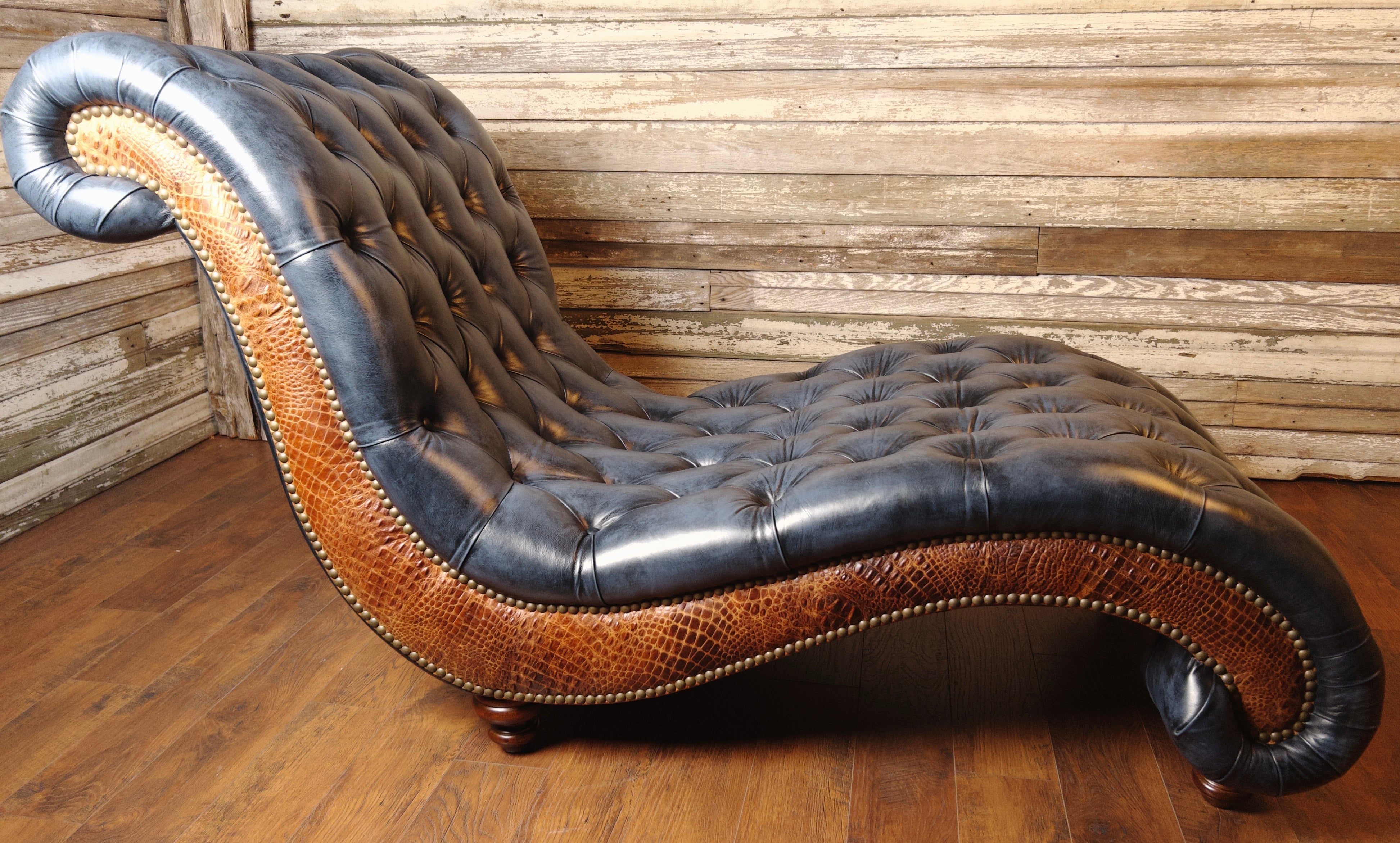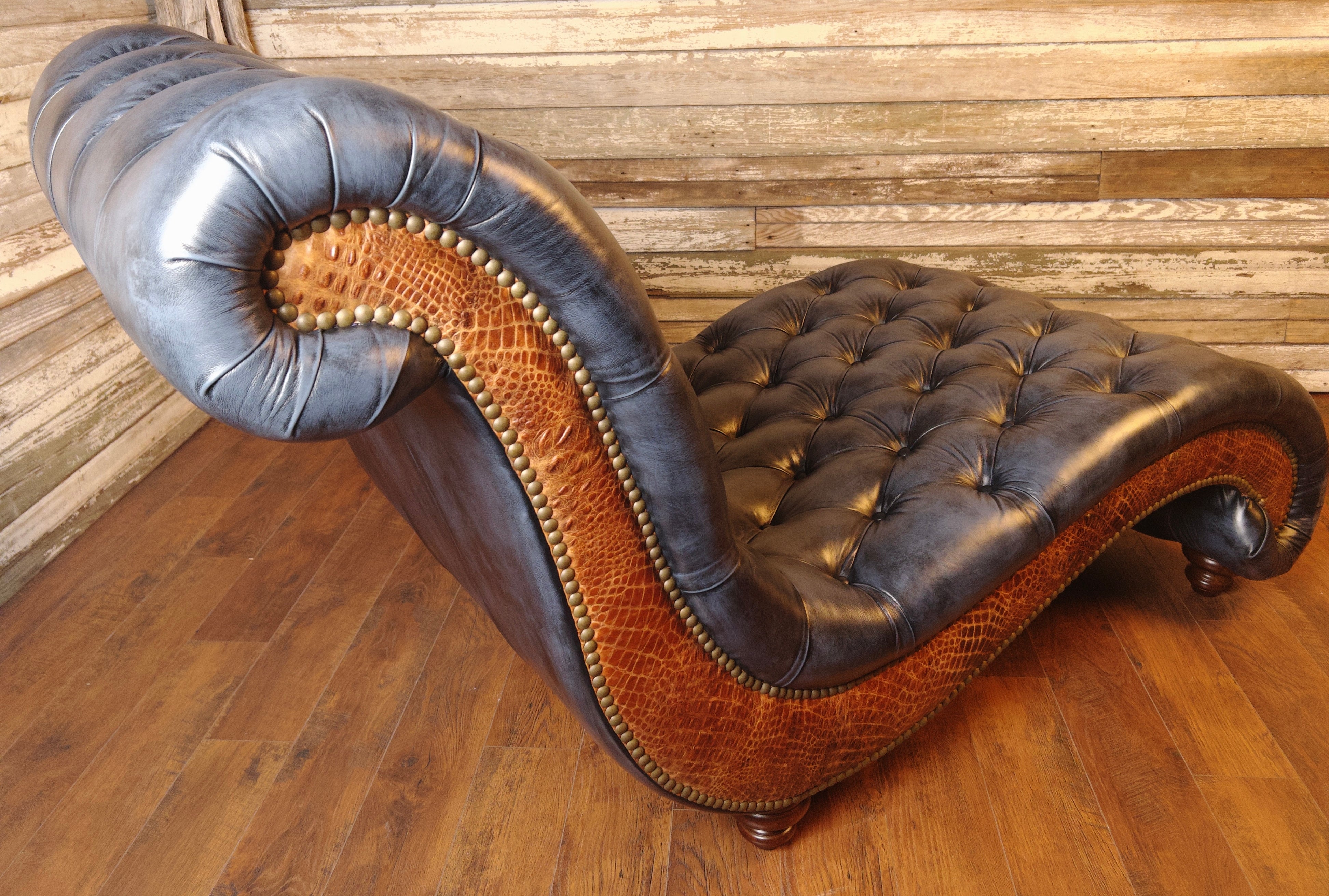 Experience uncompromising comfort with the Tufted Leather S Chaise Lounger, where Western heritage meets contemporary luxury. Hand-crafted with meticulous attention to detail, this statement piece features sumptuous Brindisi Adriatic leather paired with striking cognac accents and authentic gator hornback embellishments along the sides. The expertly tufted back provides both visual depth and ergonomic support, while premium materials ensure lasting durability and timeless appeal. A sophisticated addition to any space seeking bold character and enduring elegance.