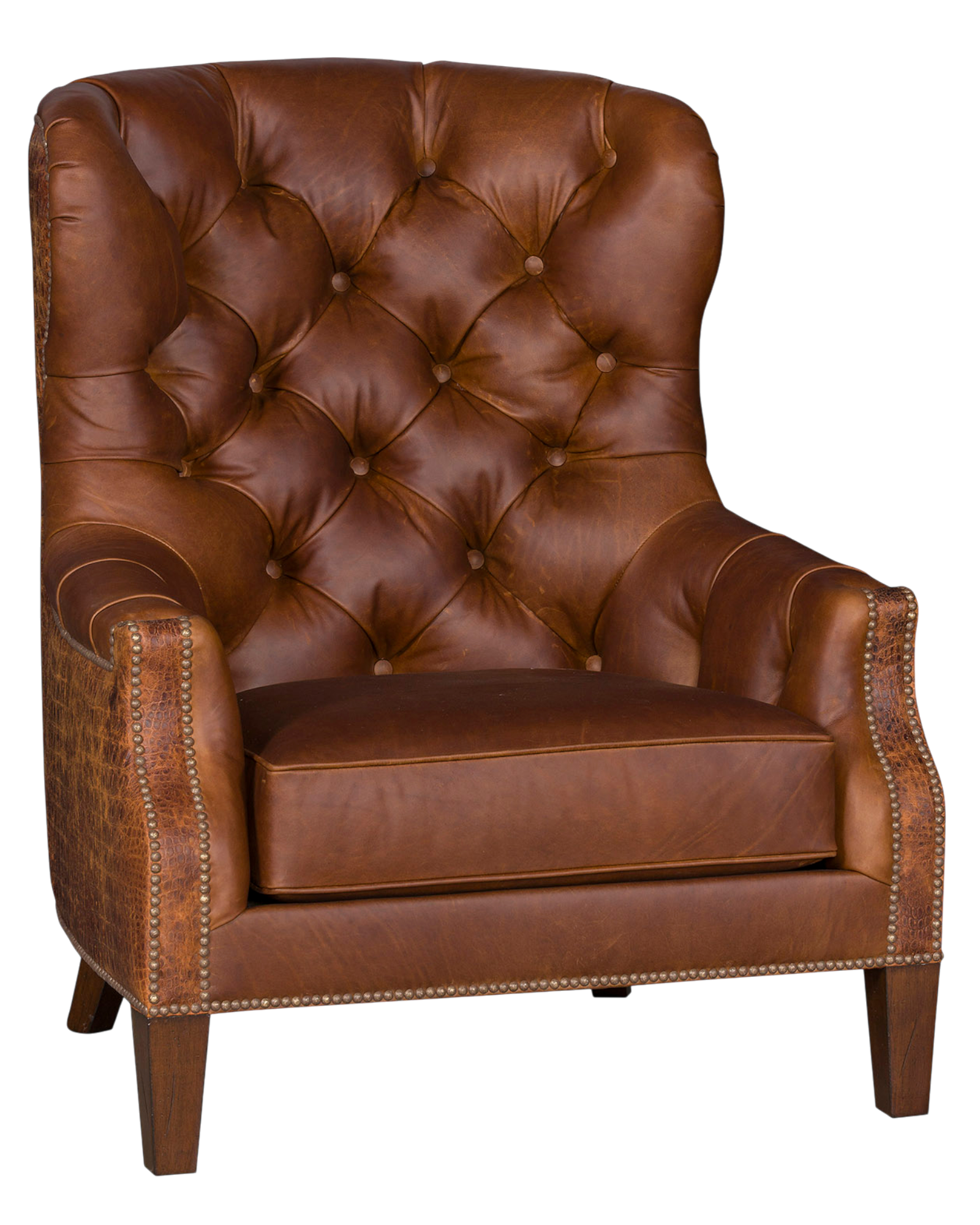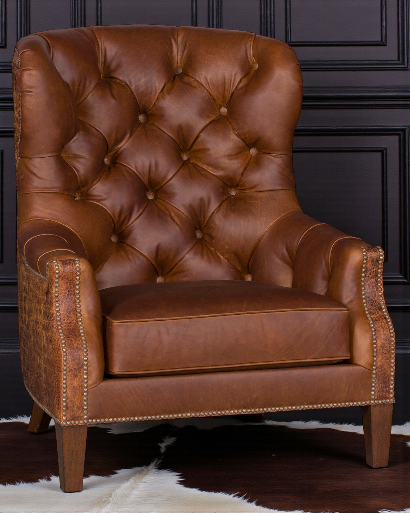 Handcrafted with enduring materials and meticulous attention to detail, the tufted silhouette offers both visual sophistication and exceptional comfort. Rich leather upholstery, classic proportions, and heirloom-quality construction ensure this chair will remain a treasured part of your home for years to come.