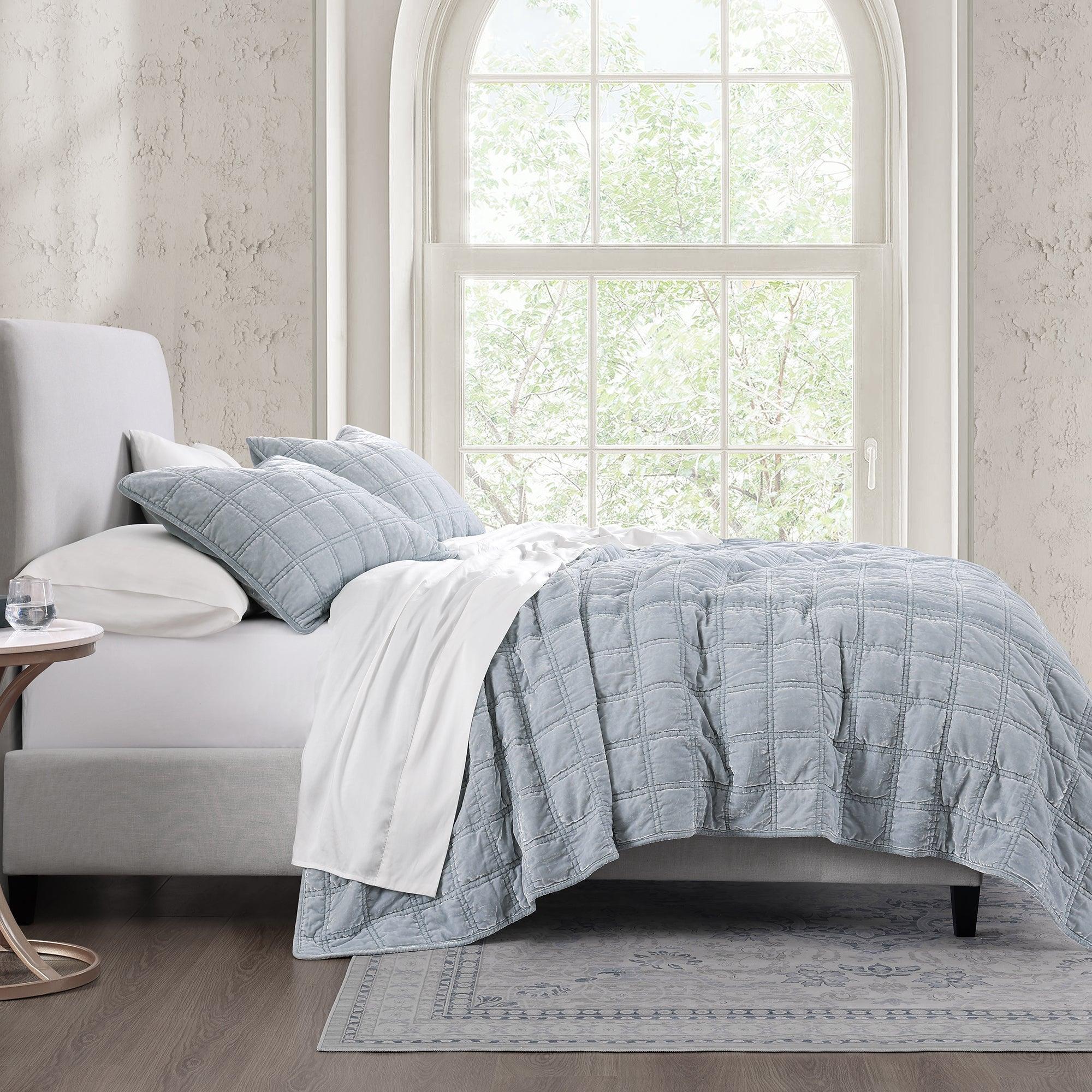 Vegas Box-Stitch Silk Velvet Quilt Set
